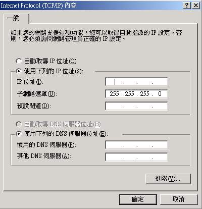 在上圖中,輸入這部電腦的 IP (192.168.0.xxx),而且子網路遮罩一定是『255.255.255.0』
