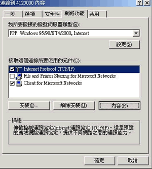 在這個畫面中,輸入 192.168.0.1,並按『新增』則電腦會將你的網路卡連接到主機那張網路卡上面去啦!基本上,到這裡就已經設定完畢了!不過,你可以再輸入一下你慣用的