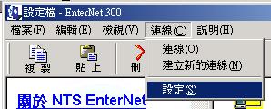 EnterNet (有點像下面圖示),選擇『連線』>『設定』!